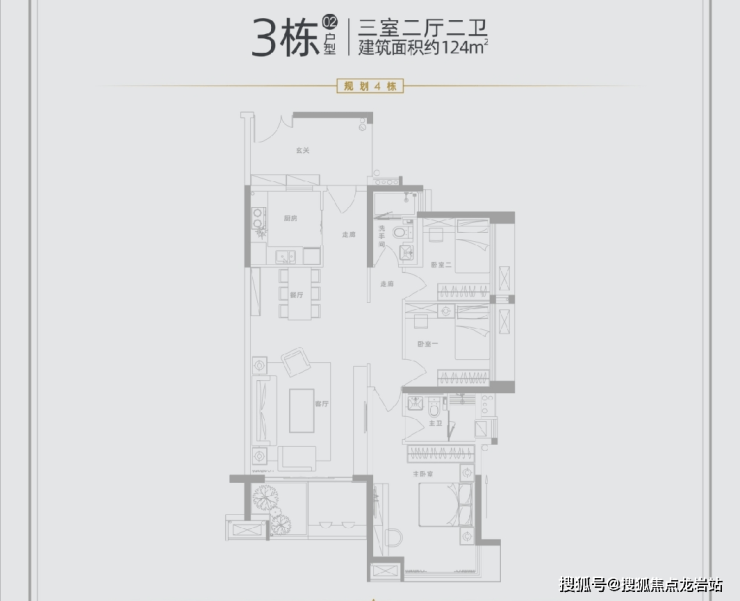 02户型:117㎡,3房2厅2卫(南,售罄)