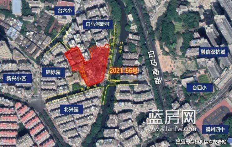 地块位于白马南路西侧,东沿白马河,临近闽江北CBD、万宝苏商圈。宁化小学、台六小、台江实验小、华侨中学、福州四中等学校也都位于附近,休闲配套有上下杭苍霞历史风貌区、白马河公园、江滨公园等。
