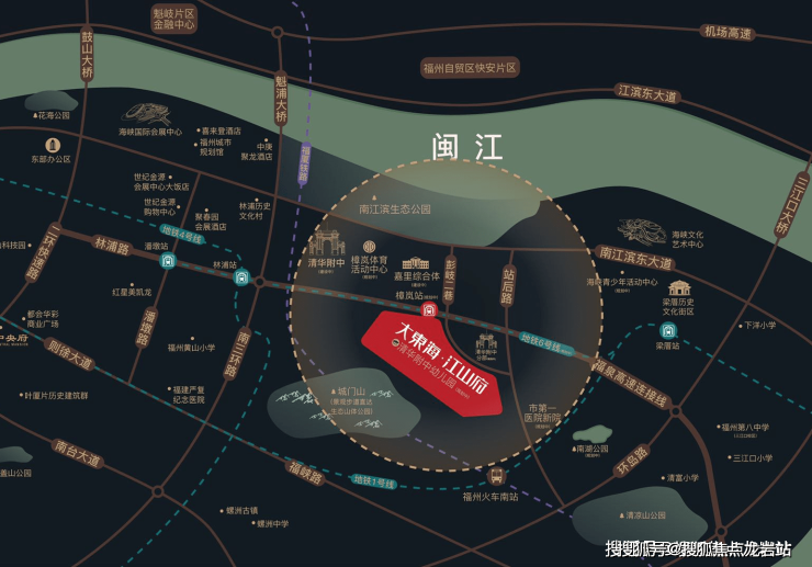大东海2021重要作品——约400亩学府住区大东海·江山府,择址东进南拓主轴核心区,紧邻清华附中福州学校,地铁上盖,咫尺6号线樟岚站(在建),对望嘉里中心(在建),举步双公园。鼎配之姿,无可比拟。