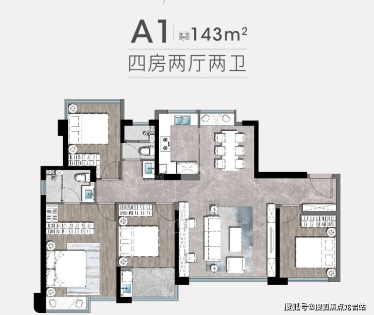 共4栋楼,在售#1和#2,面积段为143-268平方米