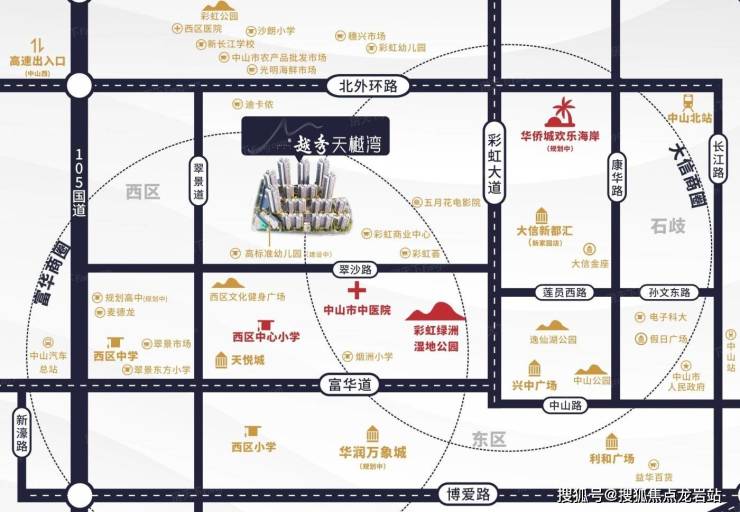 越秀·天樾湾于彩虹大道西侧,雄踞城市中轴105国道、翠景道、北外环等城市主干道,快速到达东区、南区、石岐区,出行便捷无忧。项目紧握中江高速、广珠西线高速、广珠城轨等重要交通动脉,1通道1轻轨2地铁5横6纵,湾区一小时生活圈