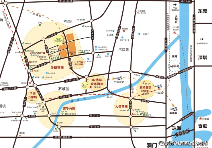 项目位于西区沙朗东片区城市中心,约7公里范围含括2大交通枢纽站:中山北站、 中山汽车总站