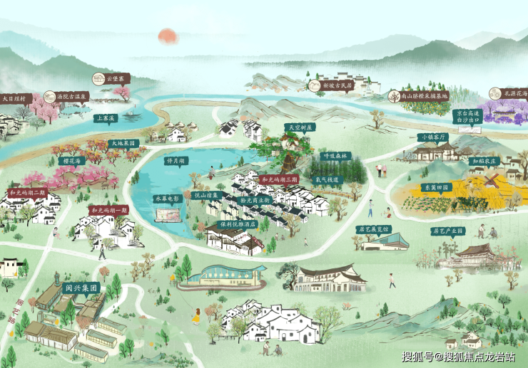 3、街:1万㎡轻奢酒店及悦山宿集特色客栈;拾光商业街,汇集山渡书屋、咖啡馆、儿童乐园、餐饮等多元业态;