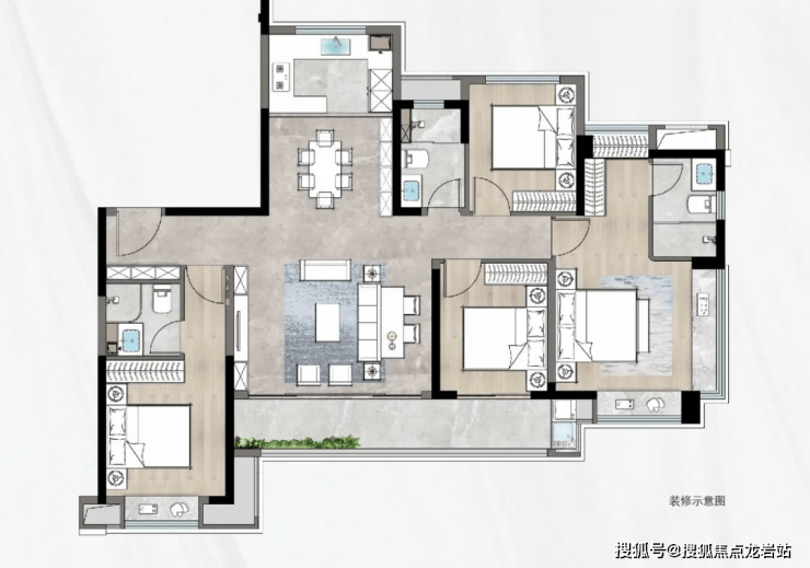 ③楼栋角度错动,拉大楼间距,不仅仅只有前排楼栋能享受到极致景观面,后排楼栋南面可看中庭园林,北面可赏水面景观带。不限于头排,某一户型,而是项目的每一户都能奢享景观资源。