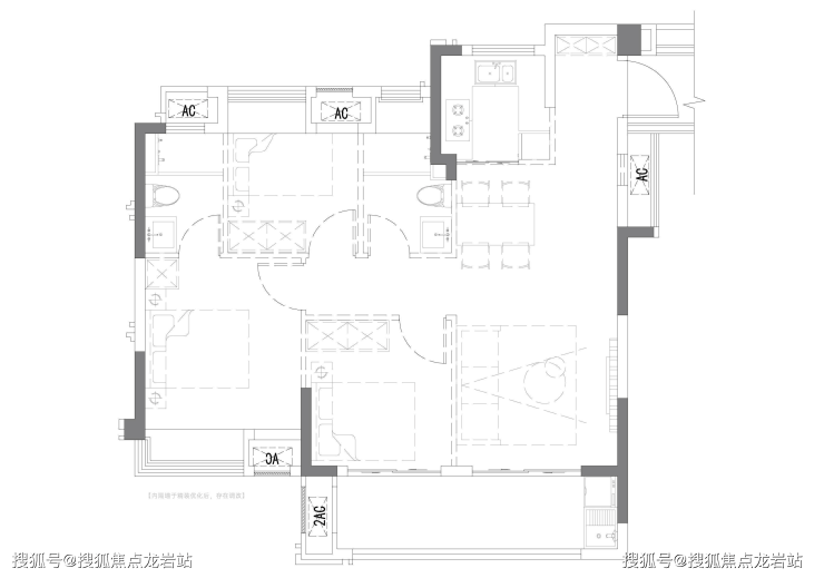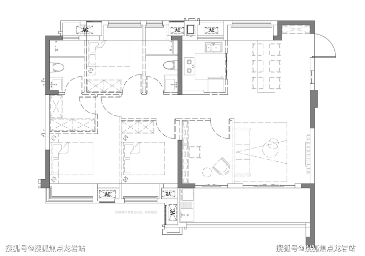 89平米:三房两厅两卫,连廊中户和端头,三开间朝南,动静分离的主流布局,主要硬伤在于主卫对着床,亮点在于89平米做大面宽的阳台,部分89平还是端头,也算少见。