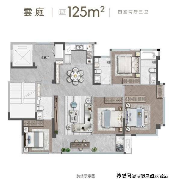 景观特色 建筑入口采用极具气势的弧形大挑檐,打造长约50米、高约7米的酒店 式入户大门。泗水归堂环岛落客设计与景墙,营造高奢礼序的归家仪 制,约130m的“城市会客厅”提供休憩赏景、会客交友的私享天地