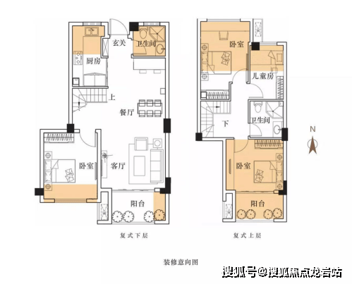 约90㎡复式四房 一梯六户 最高扩容率143%