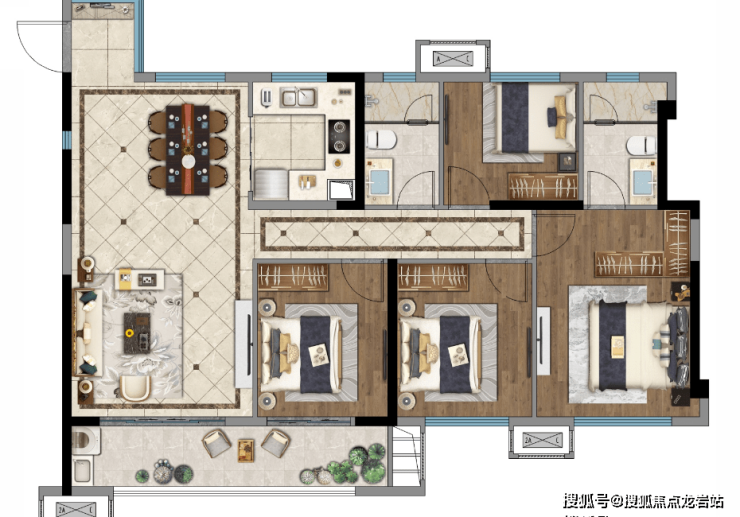 3室2厅2卫1厨, 89平米双卫生间客餐厅相连主卧套房私密性好