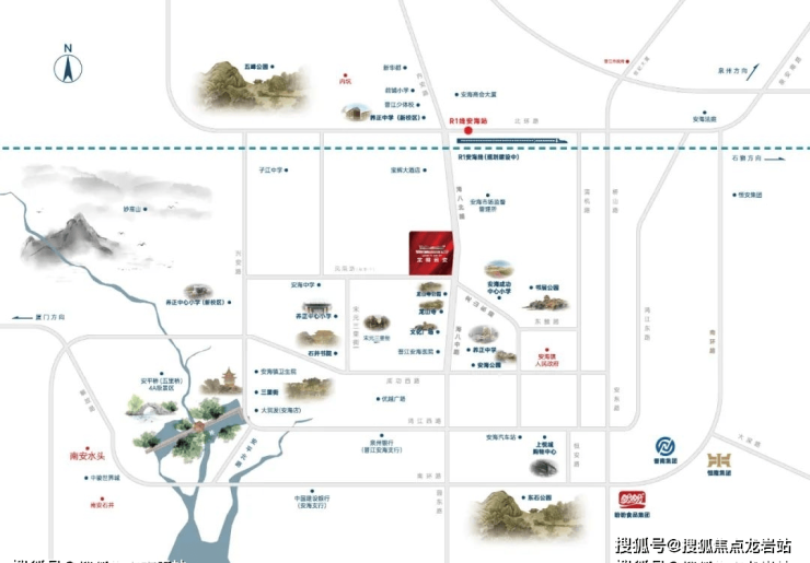 龙御君安择址龙山主轴,龙山寺贵脉之上,紧临北环路、海八中路等主干道,串联起生活的无限可能。另一面,泉州环城高速、深海高速等交通枢纽环绕,多维立体交通路网,密切泉州、晋江、南安的交通联系,无缝接驳城市繁华。同时,规划建设的泉厦漳轨道交通R1线将设置安海站,未来可快速通达厦漳泉。