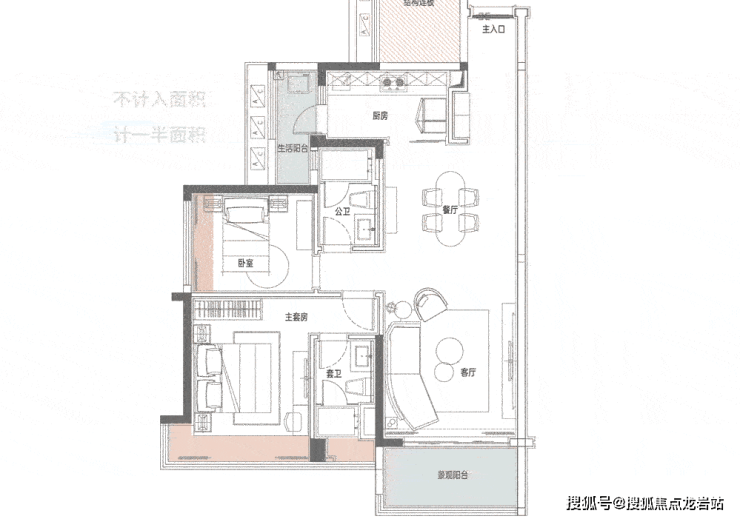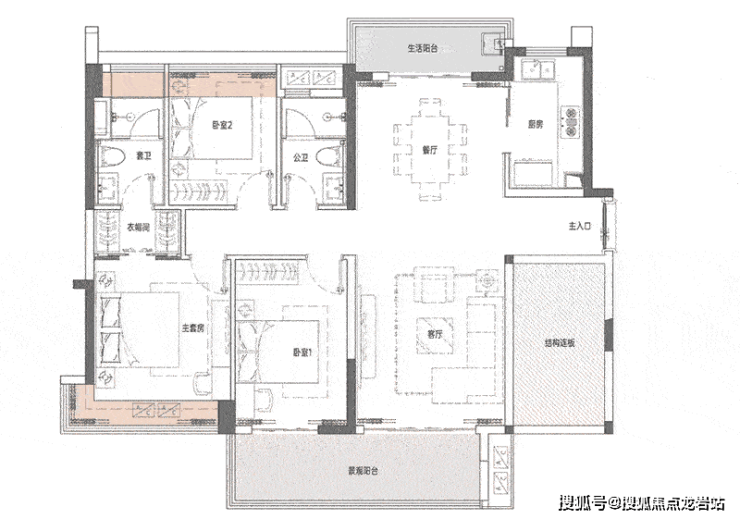 103㎡2+1房两厅两卫 建面103㎡厨房带有生活阳台,为“一字型”设计。