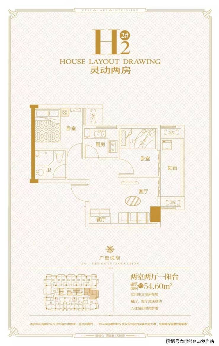 2、H2户型:54.6㎡ ,两房一厅一卫一阳台