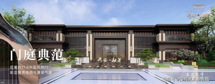 君安融著匠著约23万方高尚文贵住区,以人文雅筑重构九重礼序,重现中式建筑的庄重浑厚之美。
