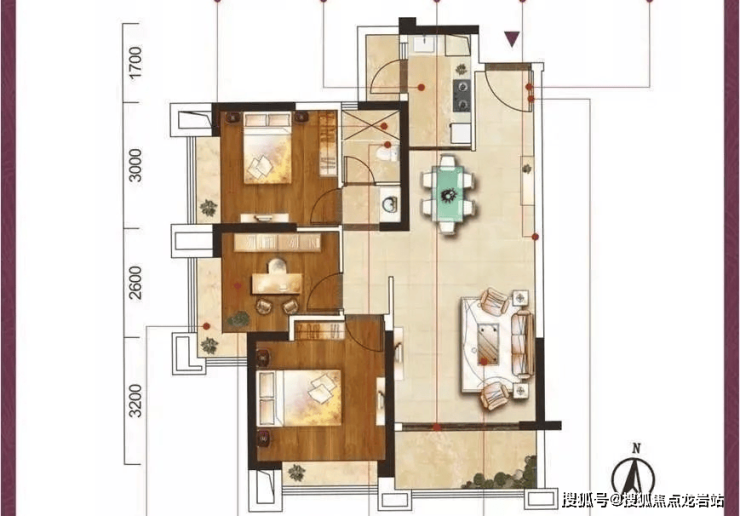 约98.33㎡,三室兩厅兩卫