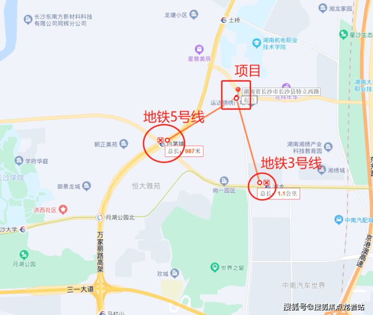 周边5、3号地铁路线加持,距离地铁5号线白茅铺站和土桥站均约1公里,距离地铁3号线湘龙站约1.1公里,立体交通网络通达全市