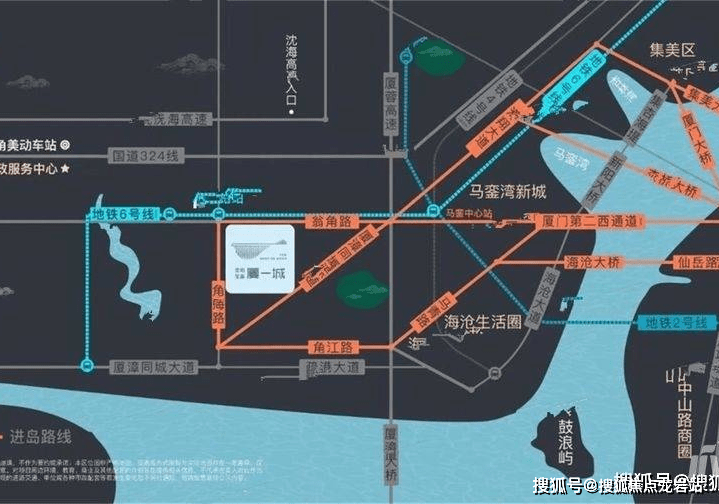 交通项距厦门地铁6号线延伸段(建设中)角海路站200米;“三横两纵”——三横:翁角路、角江路、厦漳同城大道;两纵:厦漳同城大道、马青路,25进岛