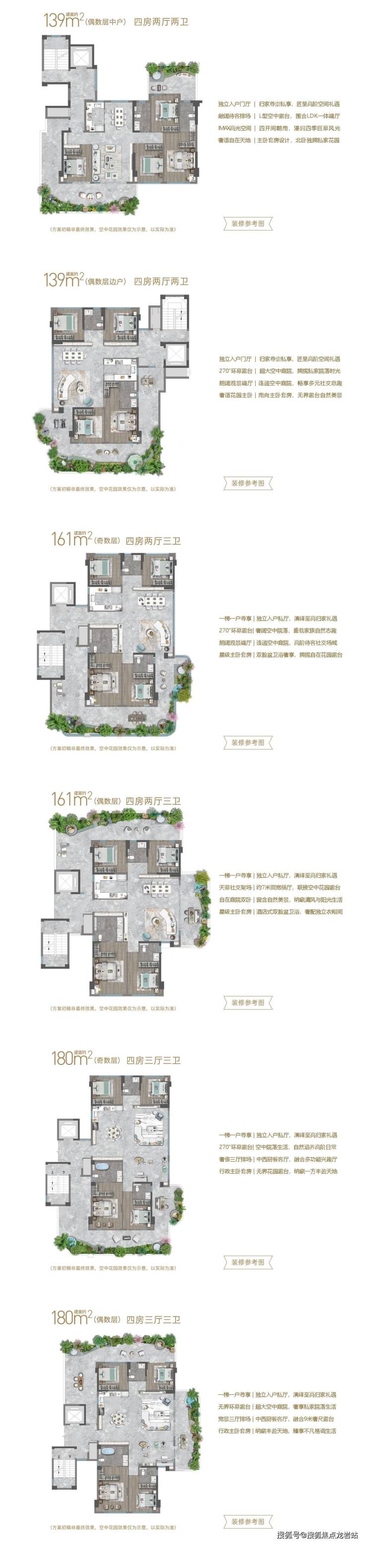 4、本宣传资料涉及户型仅供参考,其装修布置、家具、陈设等非交付标准,均不属于交付范围;不同户型的面积尺寸、功能布局、空间分割、门窗、管井形态位置等均有不同;相同户型因楼栋、楼层、单元等差别,局部结构、面积等也可能不同,具体以政府部门最终审定的图纸和销售合同为准。