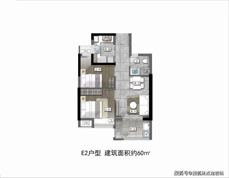 60平两房一卫一厅,户型方正,户户采光,南北通透
