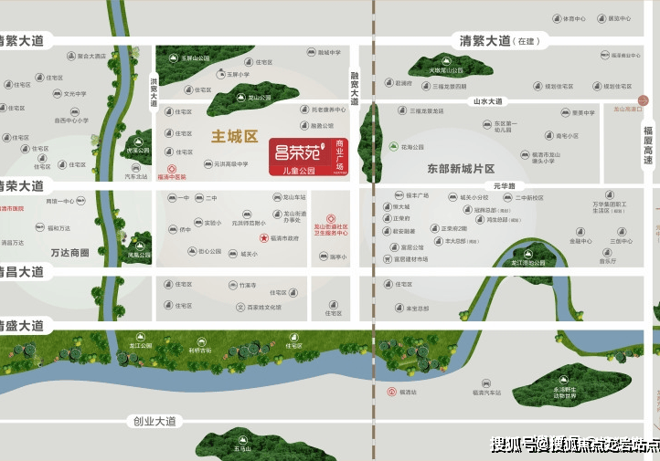 昌荣苑项目整体南低北高,背靠龙山,采用现代简约的建筑风格。是一个拥有28.44万方体量的纯改善第四代生态住宅社区(规划建设有8栋第四代生态住宅、99栋别墅),自带约6.29万方的集中式商业综合体,现项目已全面动工,共分三种物业形态分区建造。其中项目北向规划有8栋第四代生态住宅,23-25层,共计523套,两梯两户纯改善产品,面积涵盖143㎡-202㎡。项目南向规划有99栋别墅,其中15栋独栋、39栋联排、2栋三联排,面积涵盖273-510㎡,数量有限,是不可多得的稀缺产品。同时项目东向规划有商业综合体,包括金街、商业mall、商务金融办公,由万达集团全权管理经营。